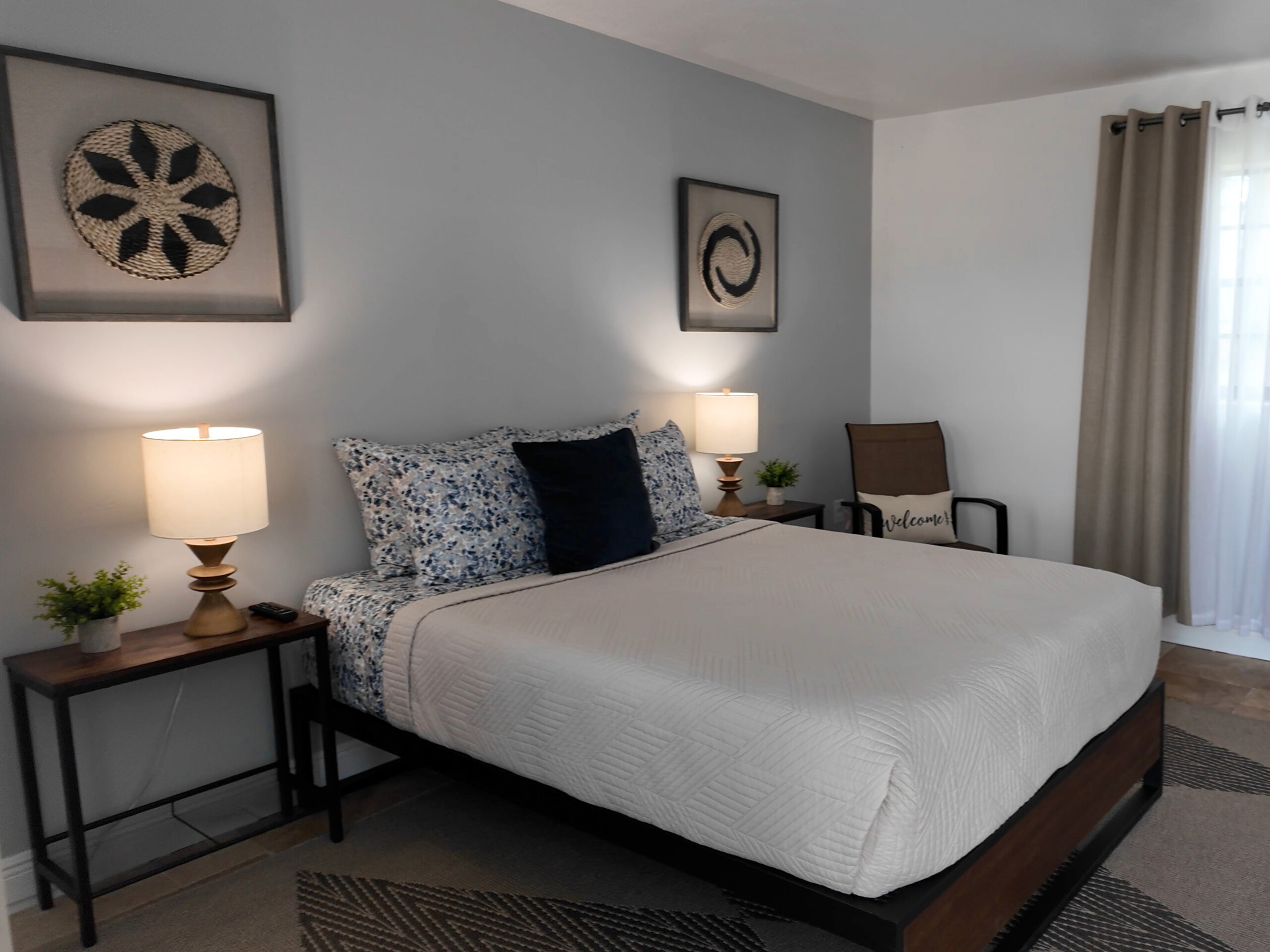 Each room is one-of-a-kind, featuring a queen bed, thoughtful design, and decorative bonsai tree.